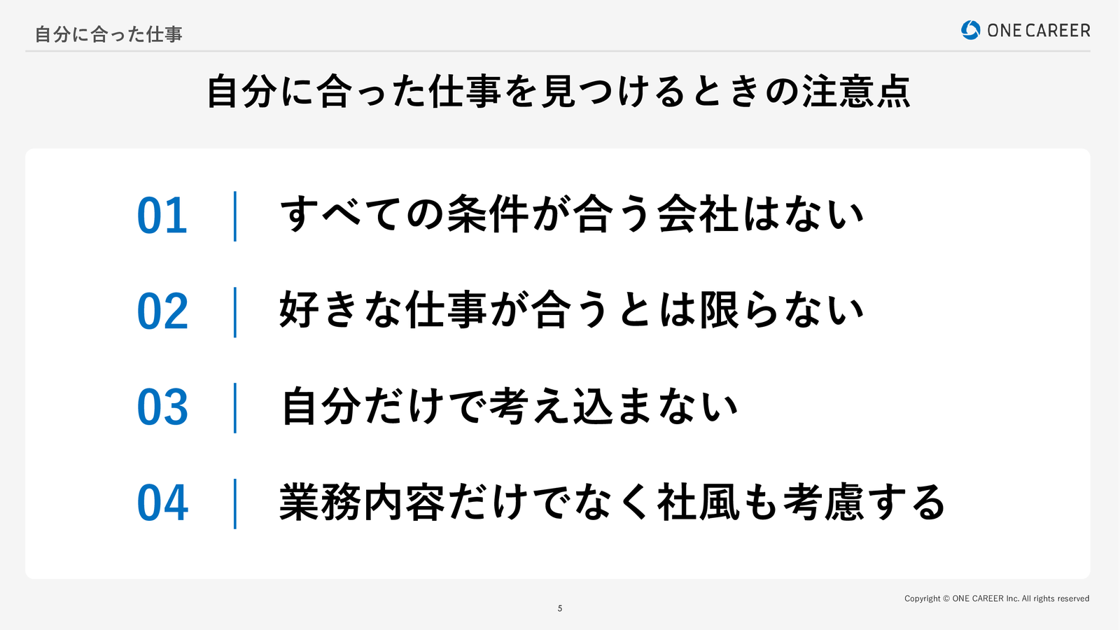 自分に合った仕事を見つける際は、以下の点に注意しましょう。