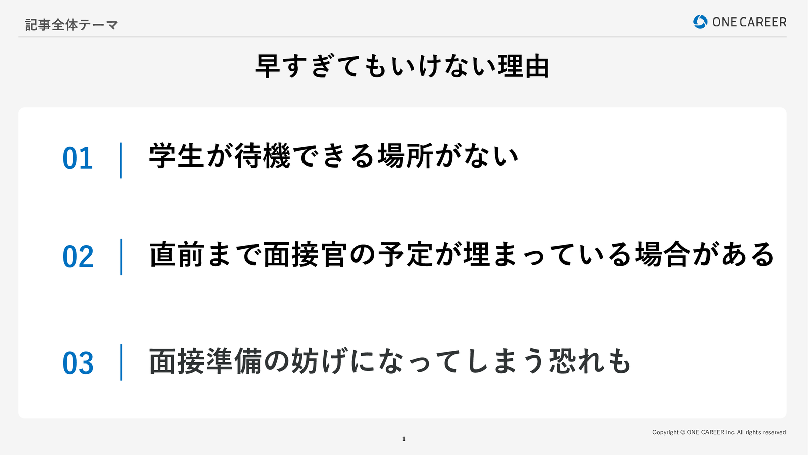 面接で遅刻することは厳禁ですが、早すぎる到着も企業側に負担をかけてしまう可能性があります。ここでは、面接に早く着きすぎると発生する問題点について解説します。