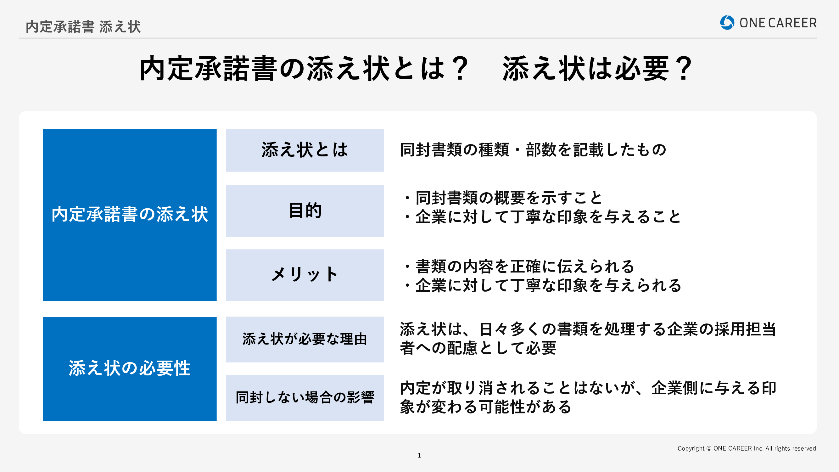 内定承諾書の添え状は、企業に対して丁寧な印象を与えるために重要な書類です。添え状を同封することで、送付書類の内容や目的を明確に伝えることができ、採用担当者に対する配慮を示すことができます。