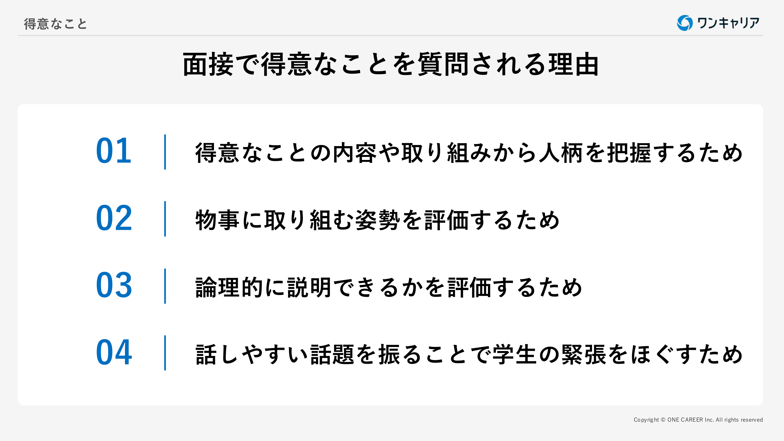 ・得意なことを生かせる仕事を見つけることができる ●面接で得意なことを質問される理由