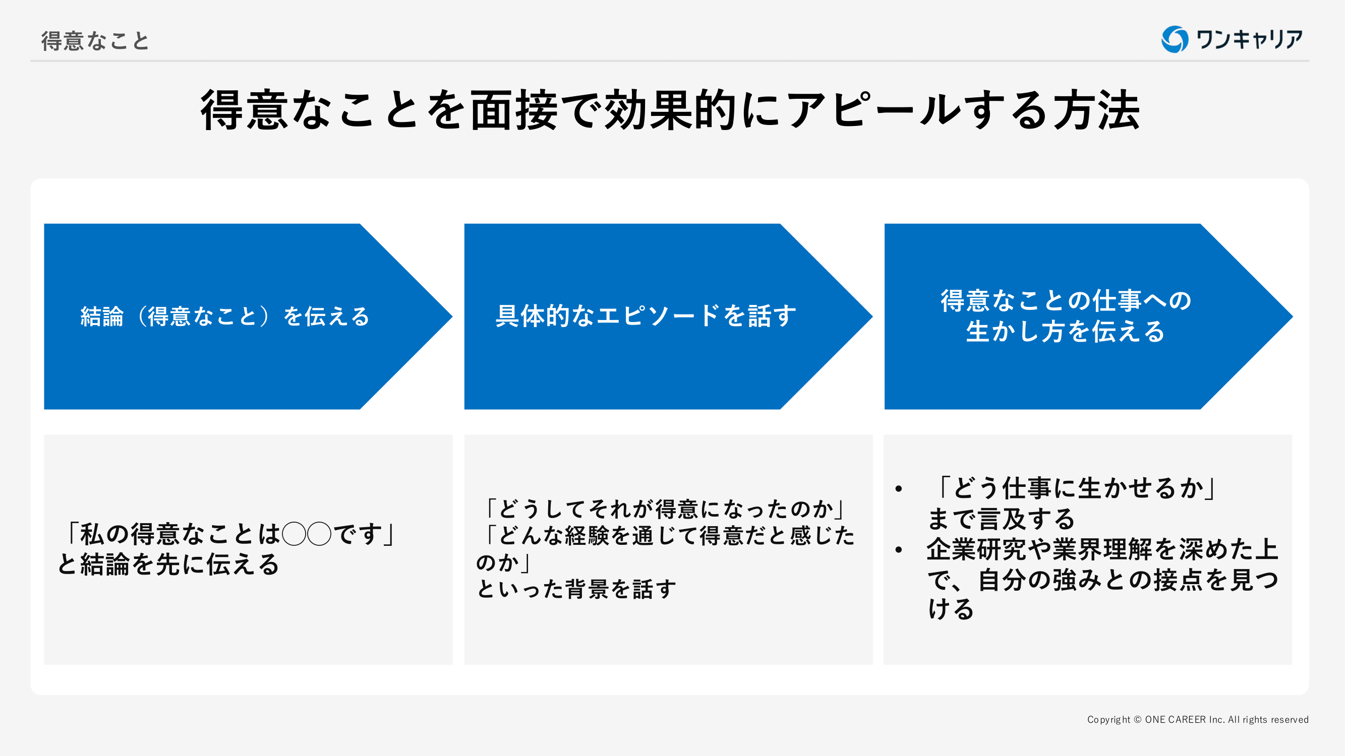 面接での伝え方を工夫すれば、自分の強みをより魅力的にアピールできます。ここでは、得意なことを効果的に伝えるための方法について解説します。