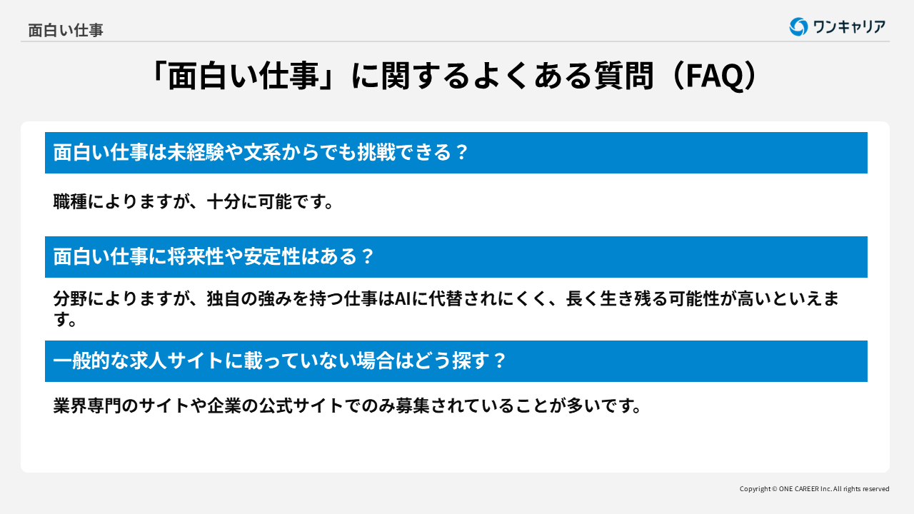 「面白い仕事」に関するよくある質問(FAQ)