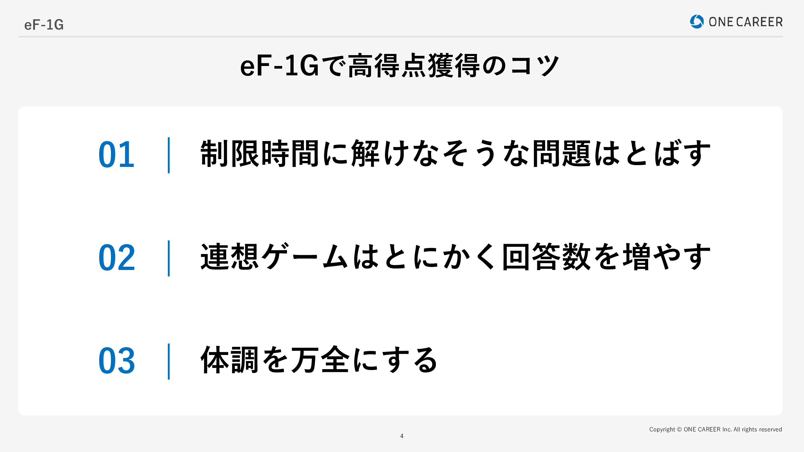 eF-1Gで高得点を獲得するためのコツを以下に紹介します。内定者の体験談も参考にして、効果的な対策を行いましょう。