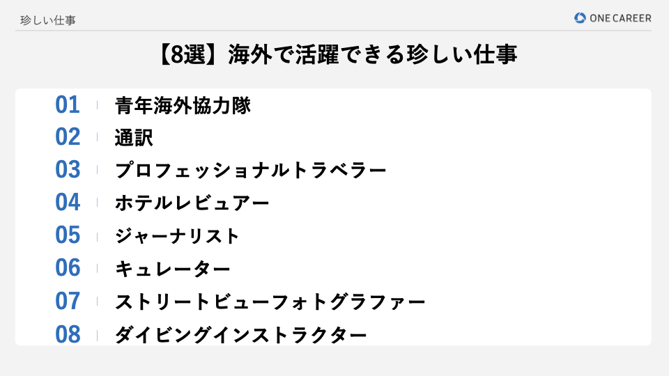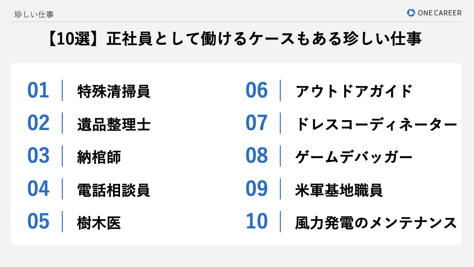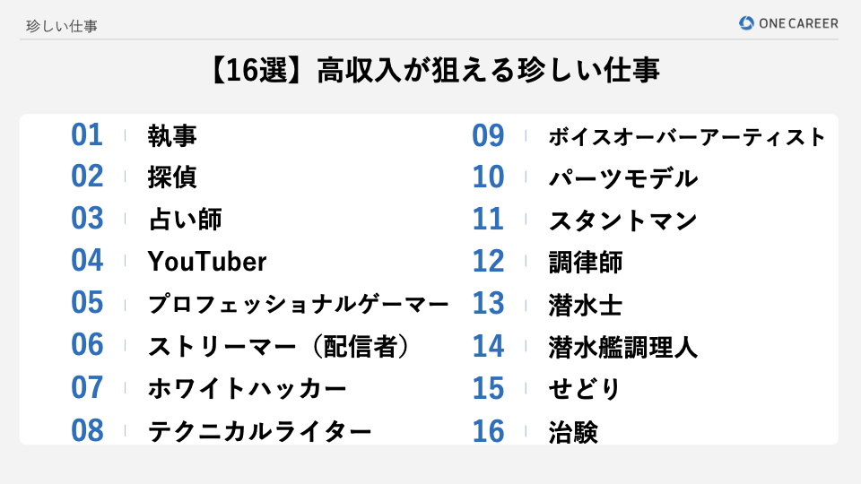 珍しい仕事には専門性が高かったり、独自のスキルが必要だったりするものが多いです。