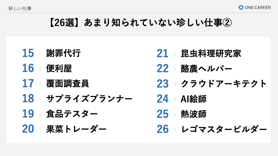 世の中には膨大な数の仕事や職種がありますが、その中にはあまり知られていない、珍しい仕事も存在します。