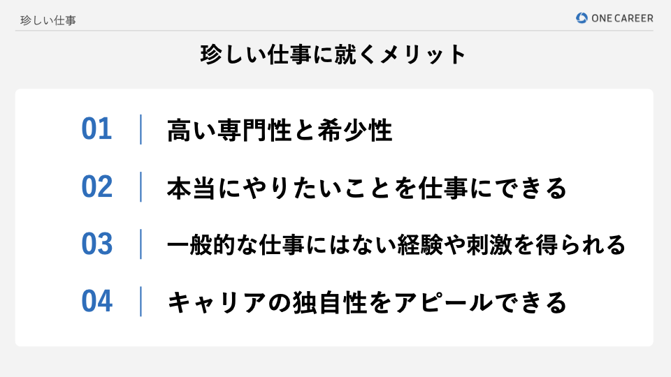 ここでは、珍しい仕事に就くことで得られるメリットをご紹介します。
