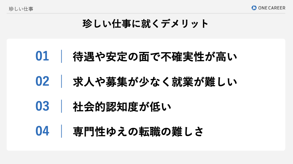ここでは、珍しい仕事に就く上でのデメリットや注意点をご紹介します。