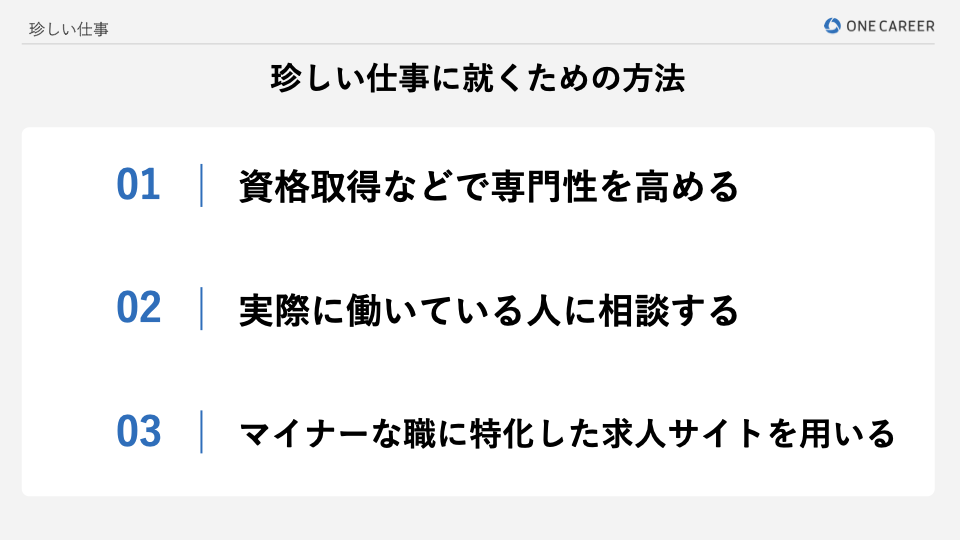 ここでは、実際に珍しい仕事に就くための方法を紹介します。
