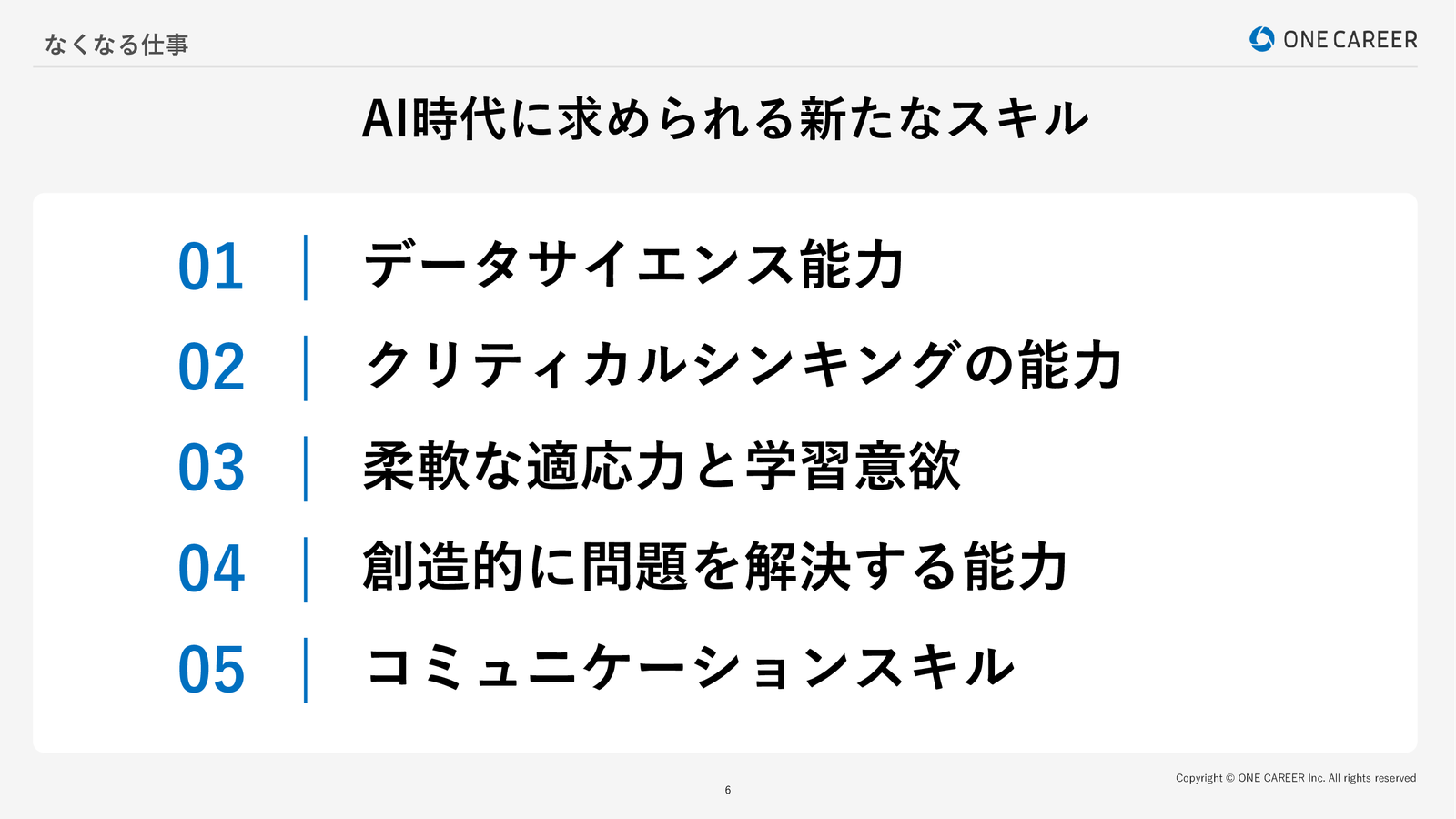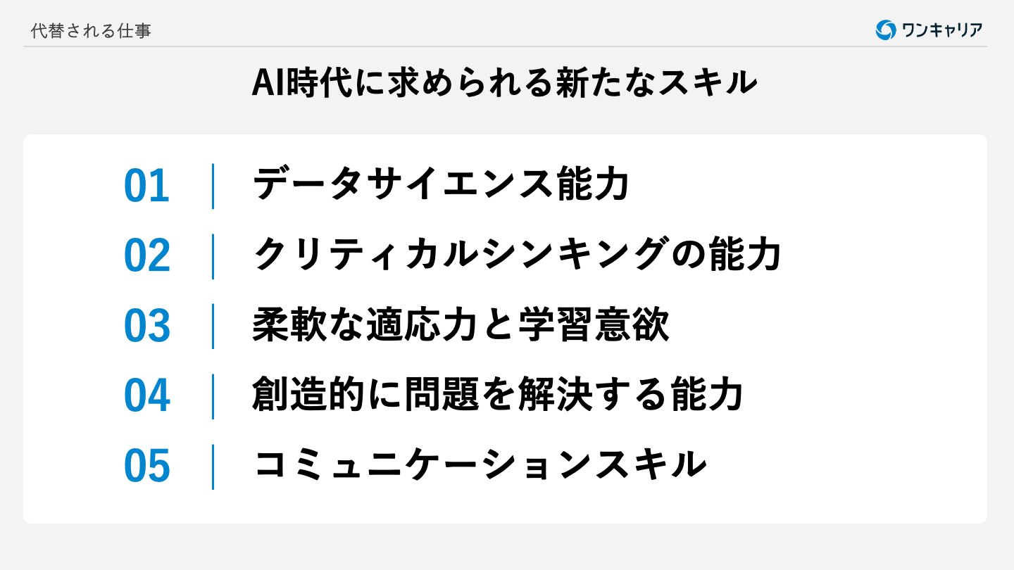 どんな仕事においても必要とされる基礎スキルであり、AI時代だからこそ磨いておくべき能力といえるでしょう。