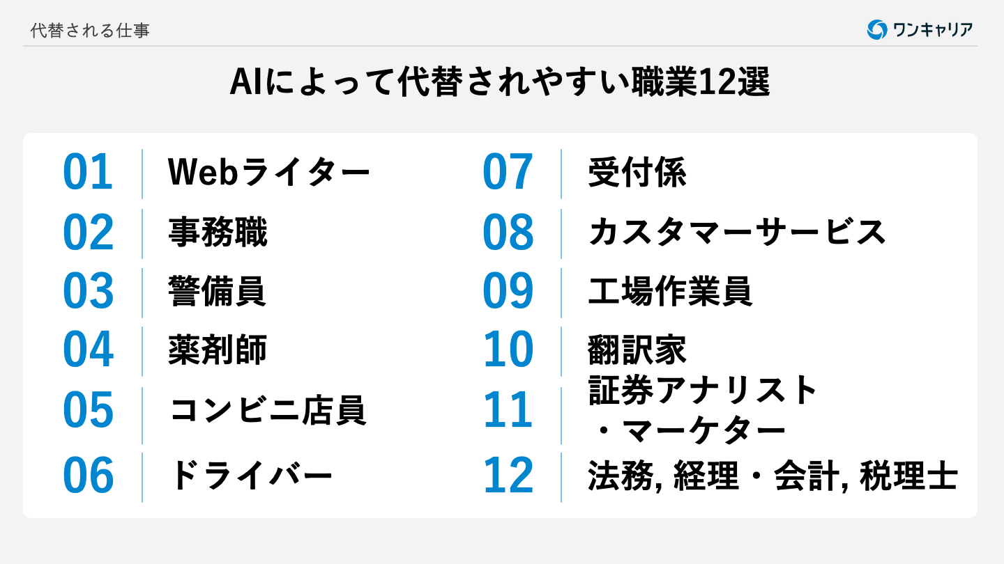 AIによって代替されやすい職業12選