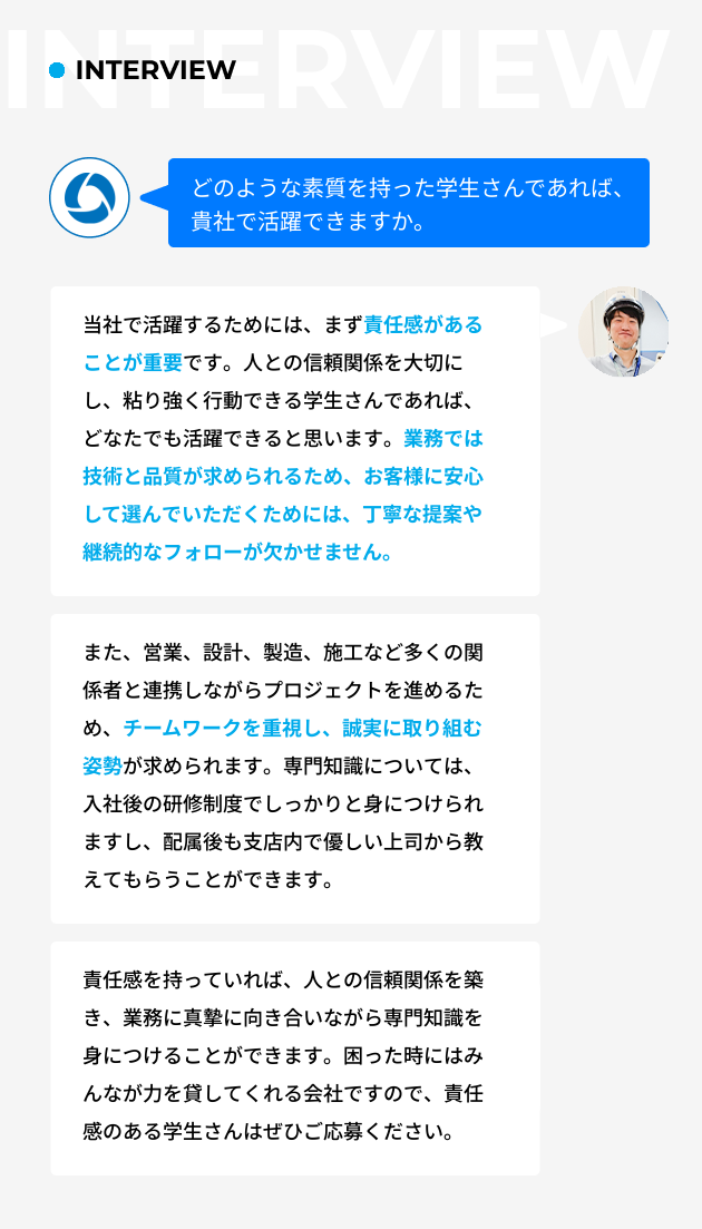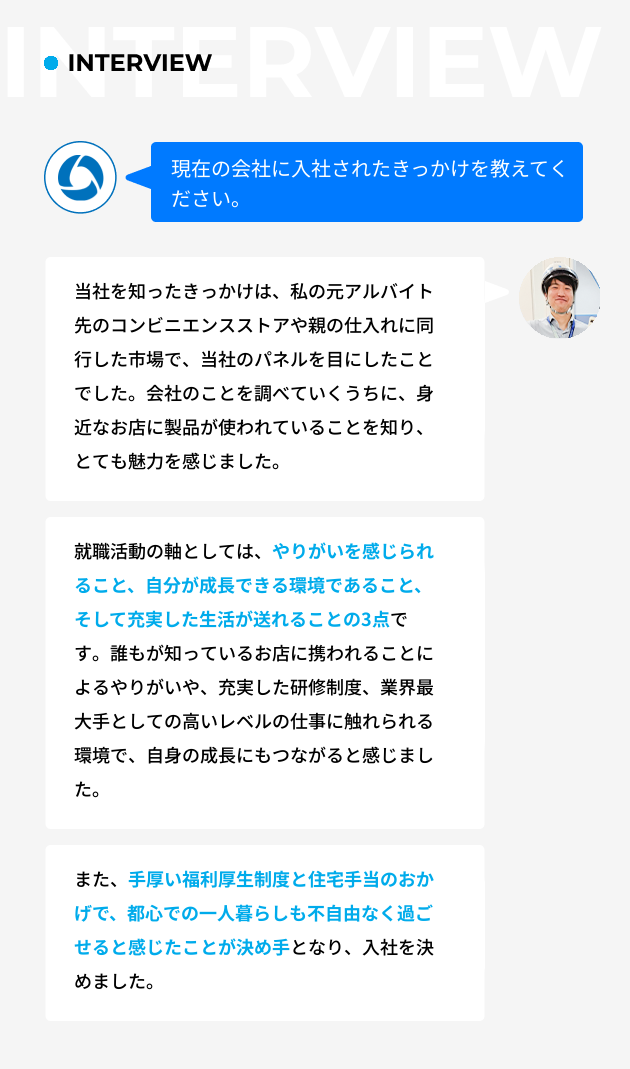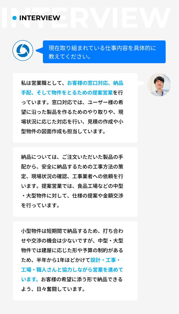 現役社員のお仕事内容を短時間で知れるインタビュー記事。