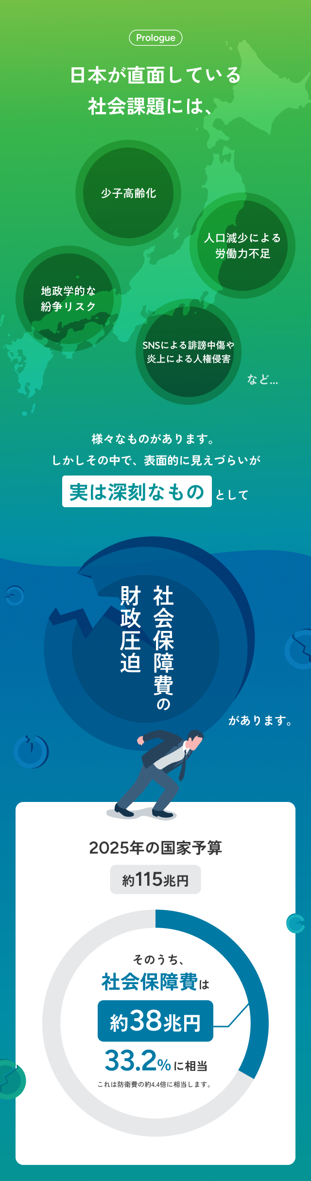 日本の社会課題と言えば、何を思い浮かべますか?「人口減少による労働力不足」や「地政学的な紛争リスク」などはよく目にすると思います。しかし、表面的には見えにくいものの、日本の未来を左右する大きな課題である「社会保障費の財政圧迫」のことはご存知でしょうか。