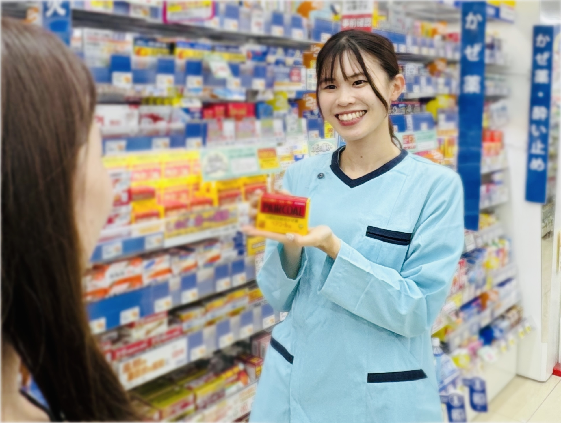 また、日用品や食料品など幅広い商品も取り扱っているからこそ、地域の方々の健康や美容、日常を様々な面からサポートすることで地域貢献もできます。心のこもった「ありがとう」や「あなたがいるからこの店に来るのよ」という言葉をいただいた時はやりがいを感じますね。