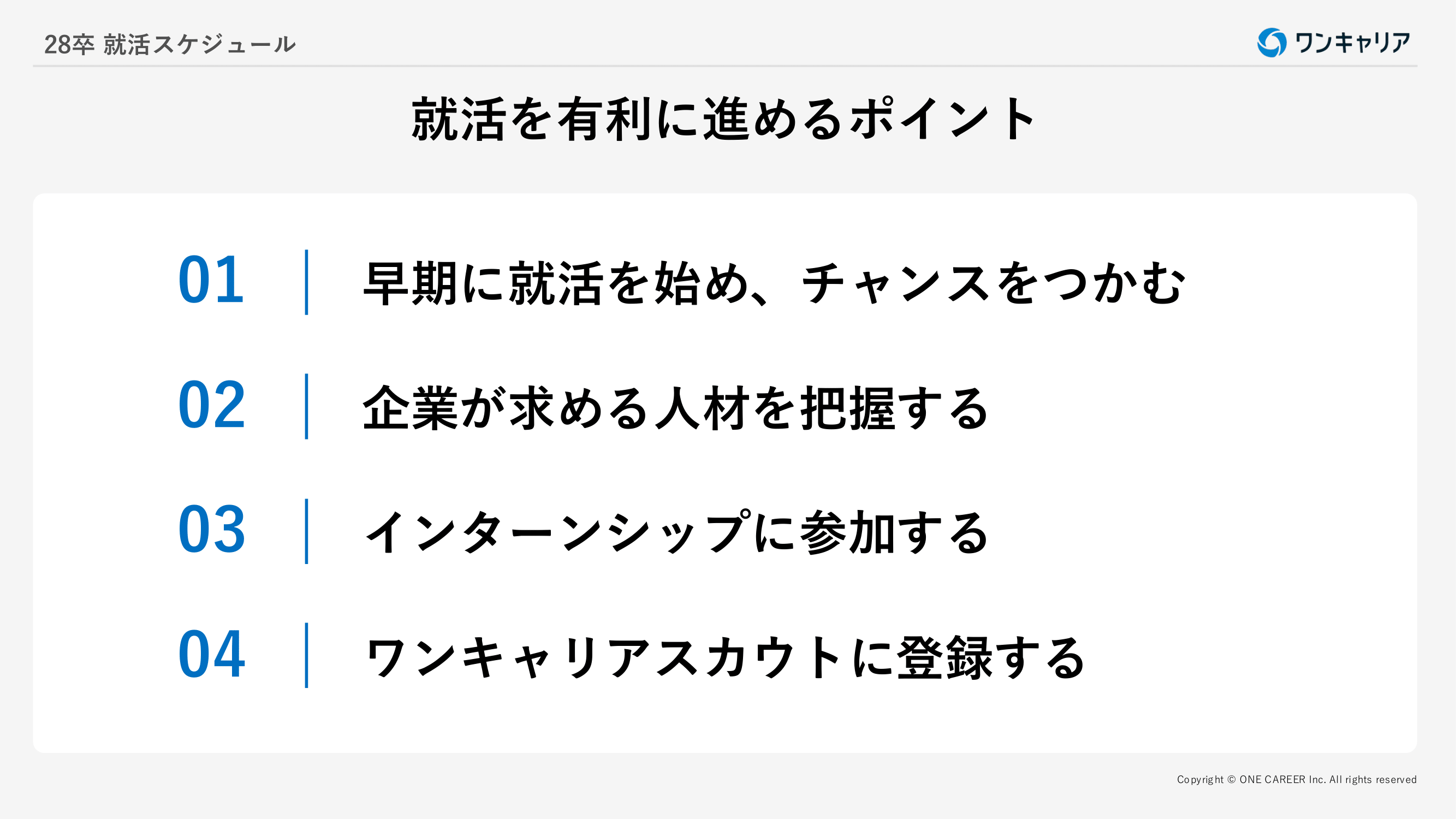 ・就活の全体像が分かり、スタートダッシュで周りと差がつく