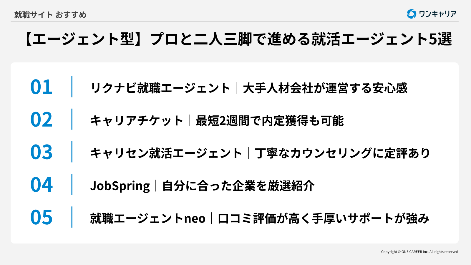 【エージェント型】プロと二人三脚で進める就活エージェントおすすめ5選
