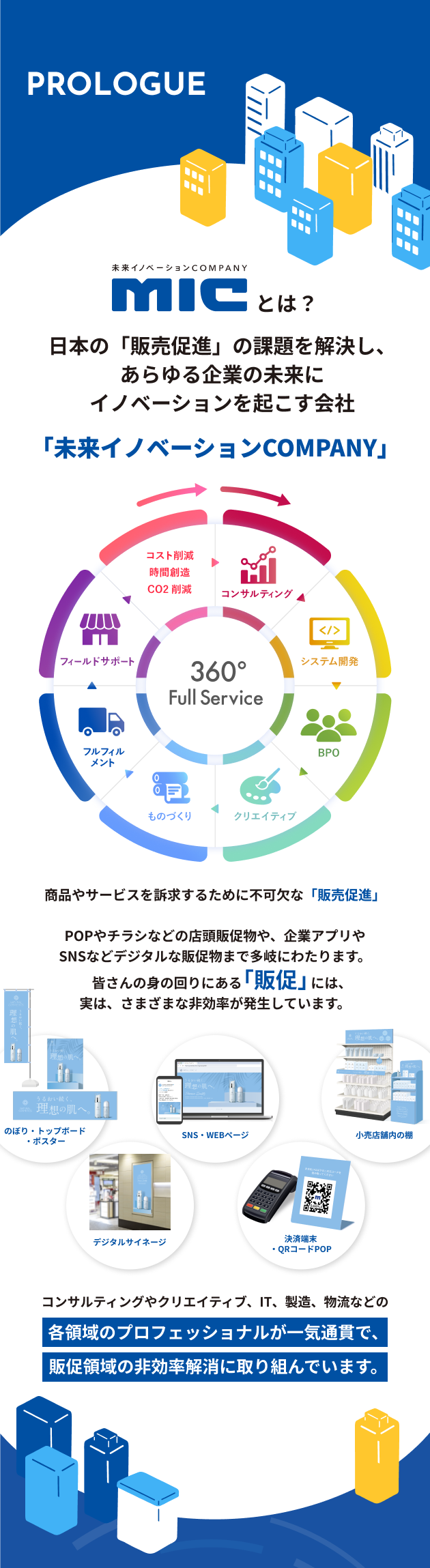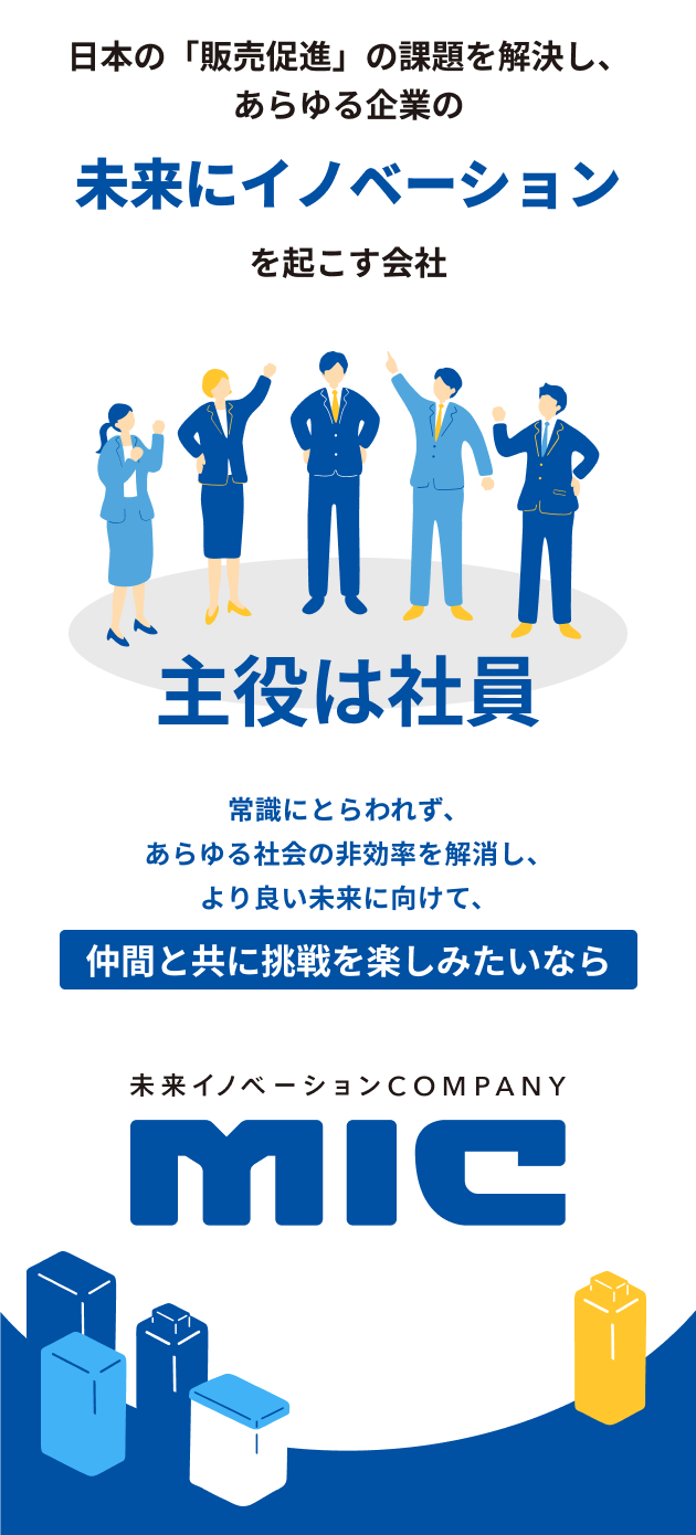 MIC(未来イノベーションCOMPANY)は、コンサルティング、広告、印刷・製造、クリエイティブ、システム開発など、ビジネスの課題解決に必要な機能をすべて自社で保有しています。「製造機能を持つコンサルティングカンパニー」という業界でも独自の立ち位置を築く同社。本記事では、MIC株式会社が提供するサービスやその価値、そして魅力的な働く環境に迫ります。.png)