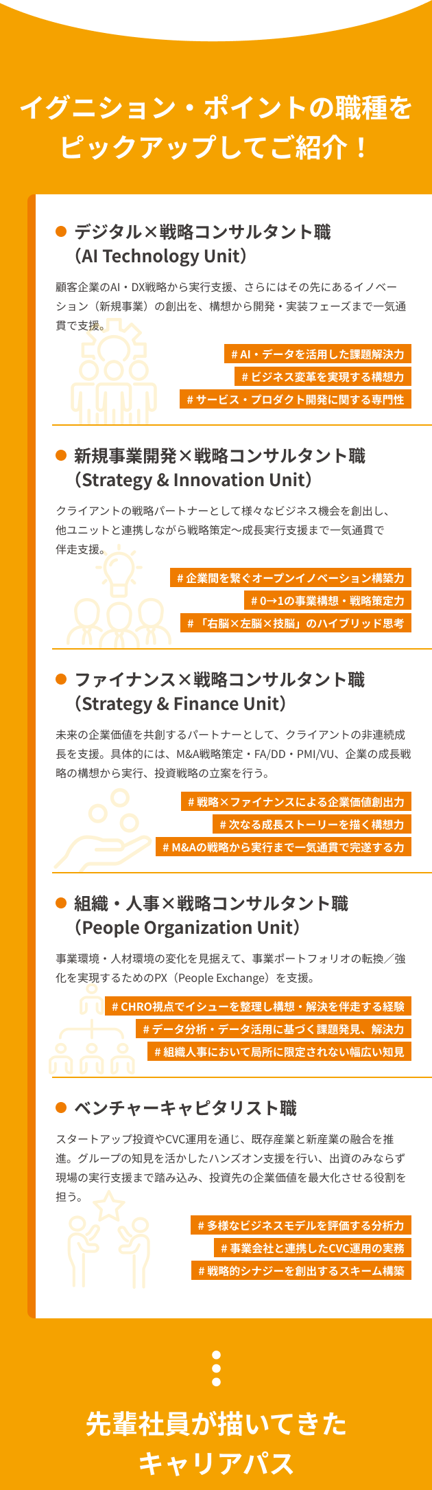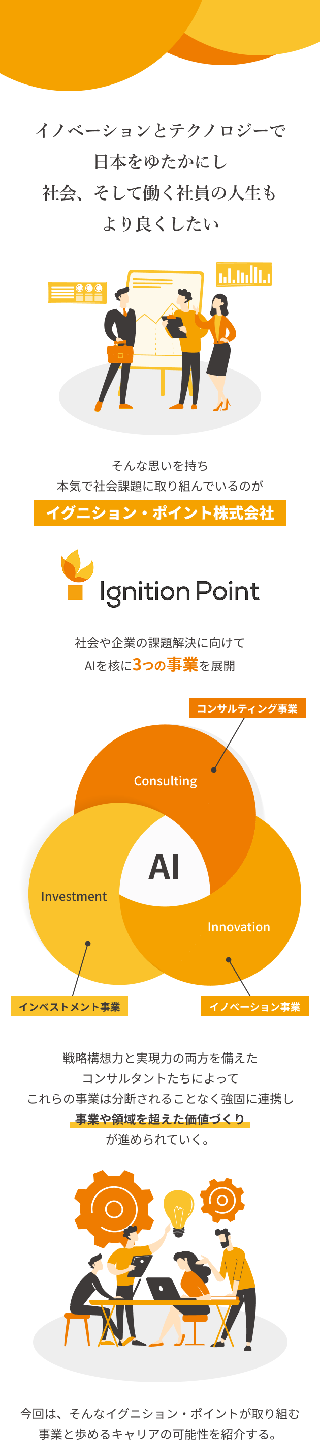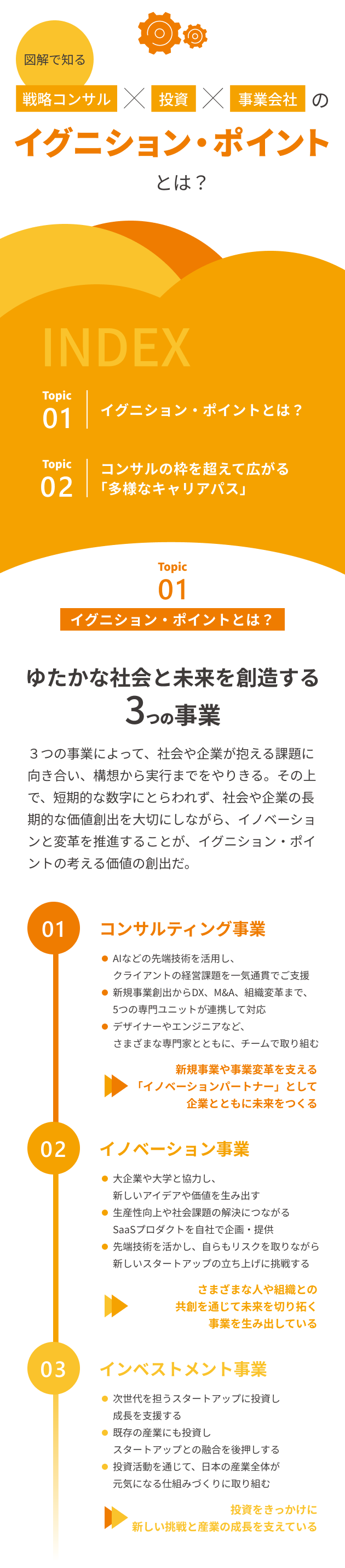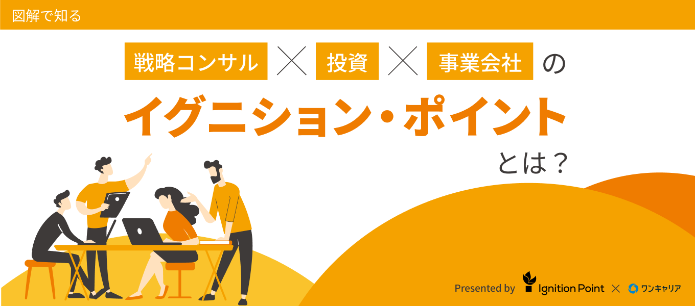 【図解で知る】戦略コンサル×投資×事業会社のイグニション・ポイントとは? 企業理解 コンサル 2026年2月25日(水) | 84 views sponsored by イグニション・ポイント イグニション・ポイントは、2014年6月に創業し、現在12期目を迎える企業です。2022年5月からは電通グループと資本提携をし、現在は「イノベーションとテクノロジーで日本をゆたかにする」という刷新されたビジョンのもと、「失われた30年」を取り戻すための活動を推進しています。 本記事では、同社のサービスが提供する本質的な価値と、キャリアパスの魅力について解説します。 【デザイン:株式会社FLUX/編集:小林 遼】 この記事が気に入ったらいいね!しよう ワンキャリアの人気記事をお届けします。 Facebook Twitter 公式アカウント ワンキャリ編集部 はじめてのキャリアを選ぶ、就活サイト「ワンキャリア」の編集チーム。 ▼公式X/Facebook https://x.com/onecareerjp https://www.facebook.com/onecareer.jp/ @onecareerjp をフォロー