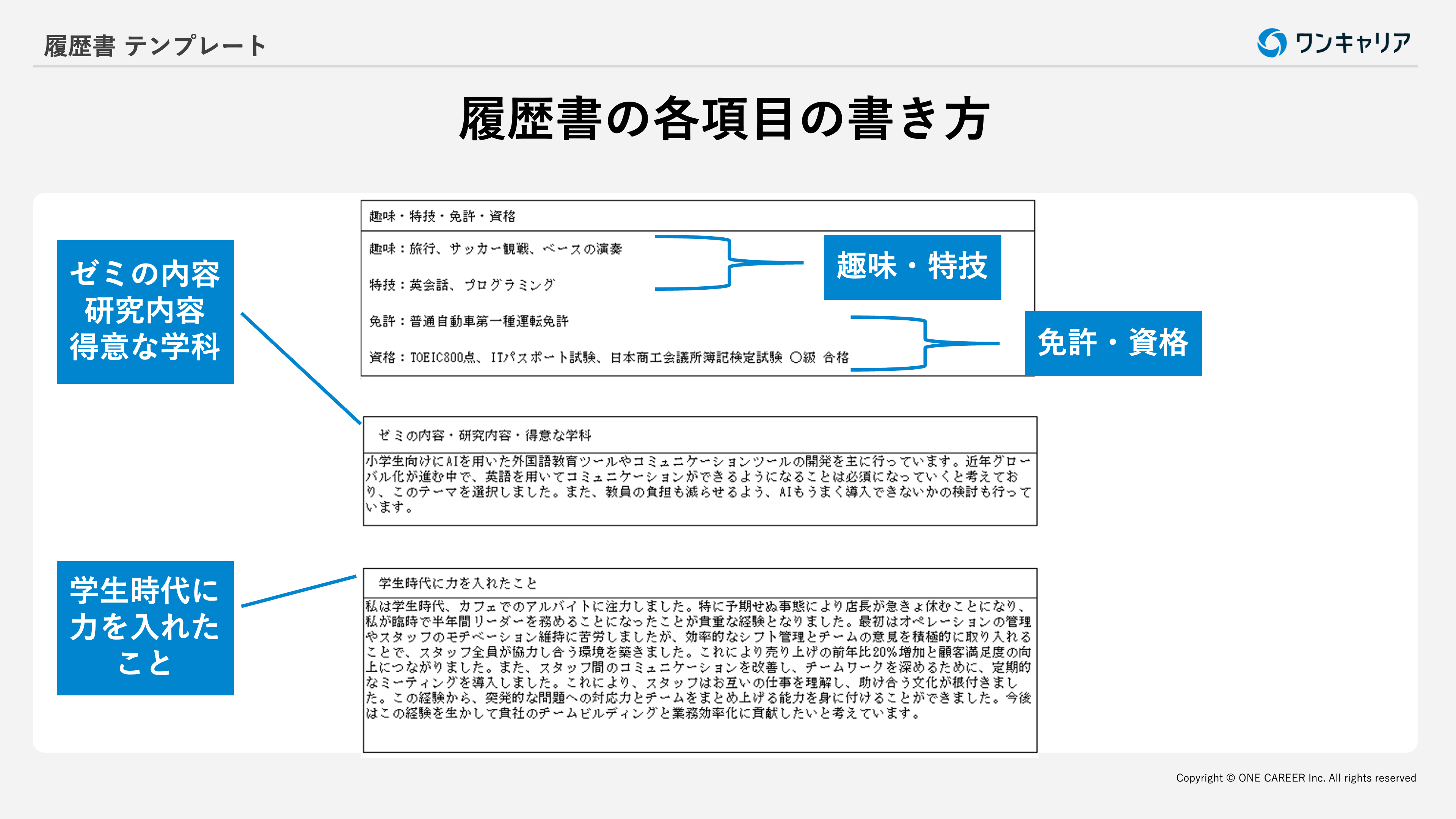 どうしても該当する内容がない場合は、「特になし」と記載しておくと、意図的に空欄にしていることが伝わります。また、空欄が多くなりそうな場合は、記入欄の構成が自分に合っていない可能性もあります。