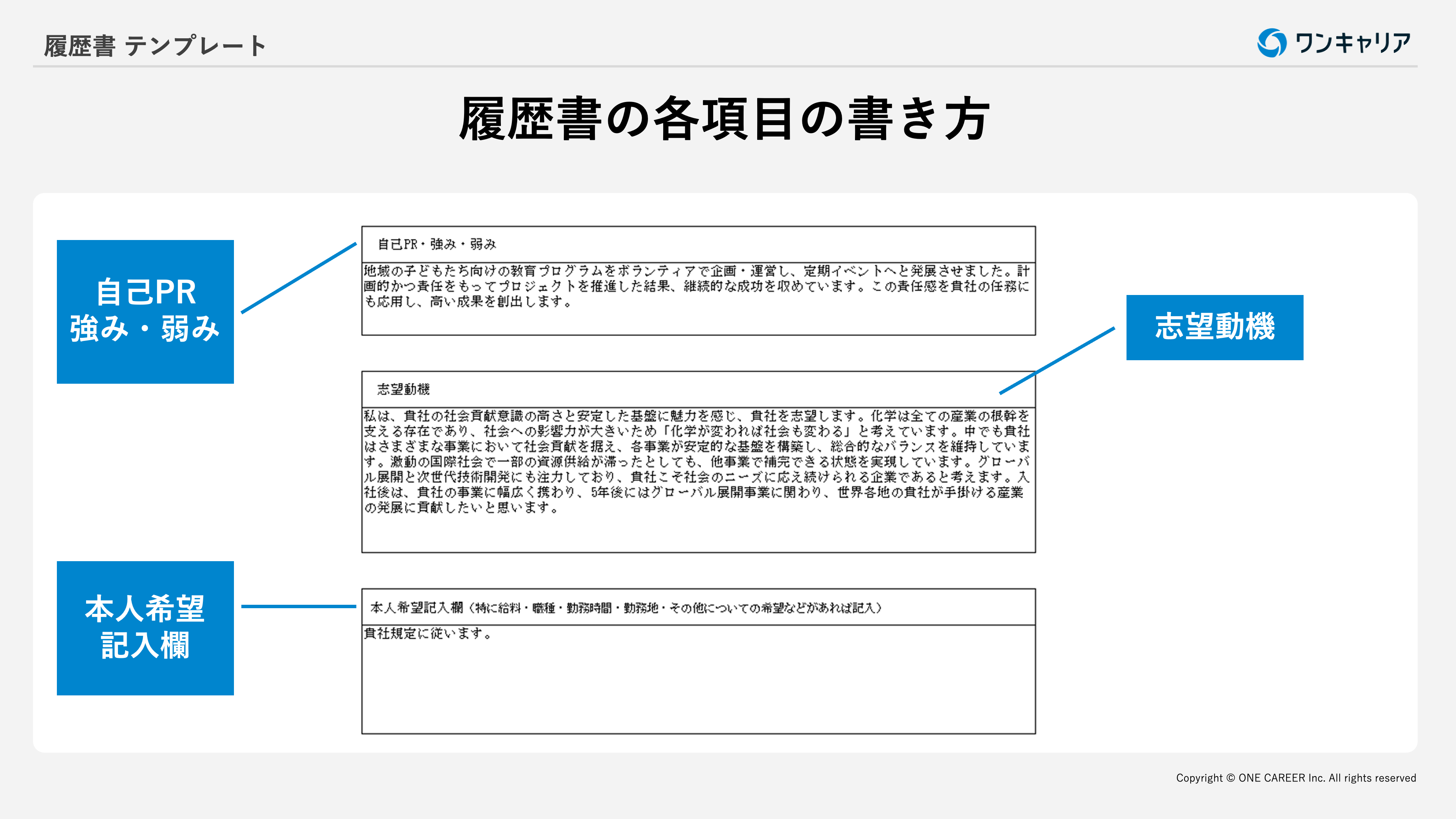 入社意欲や入社後の可能性を測るために使用される志望動機は、就活の成否を左右する履歴書のなかでも最重要項目の1つです。基本的には自己PRと同じく、冒頭で志望理由を端的に語り、根拠を示すエピソードとともに入社後はどのように貢献するかを伝えます。