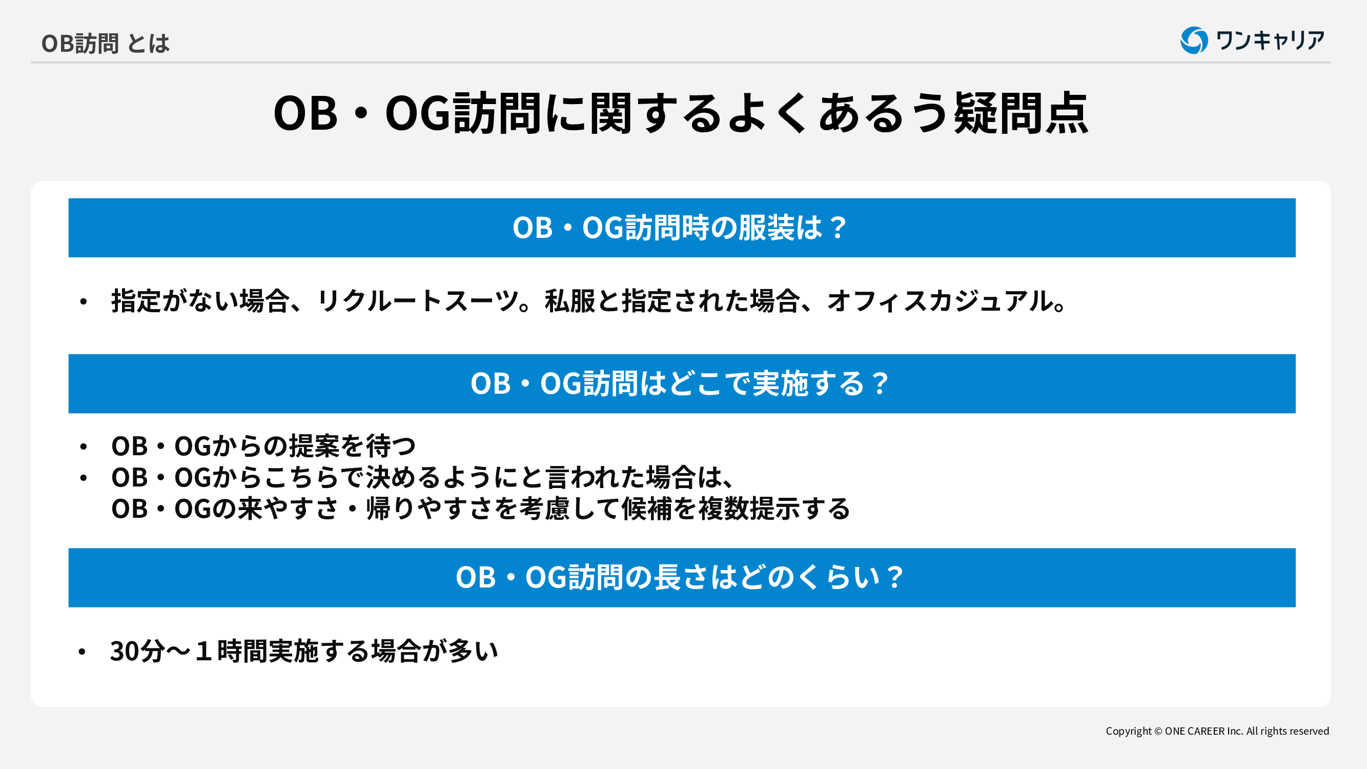 最後に、OB・OG訪問に関してよくある疑問点にお答えします。