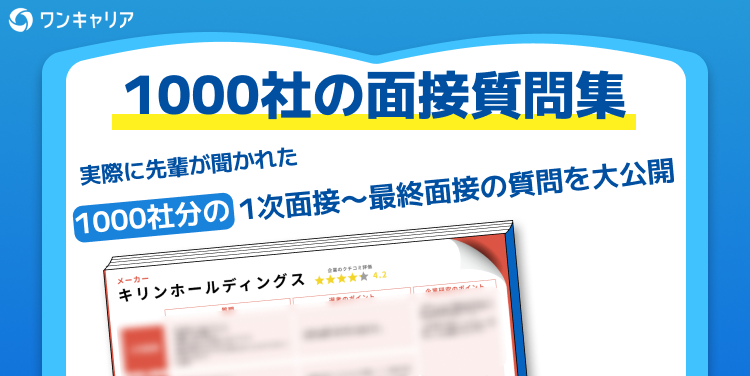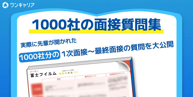 実際に先輩が聞かれた1000社分の質問を大公開!資料を使って、面接の準備を進めましょう。