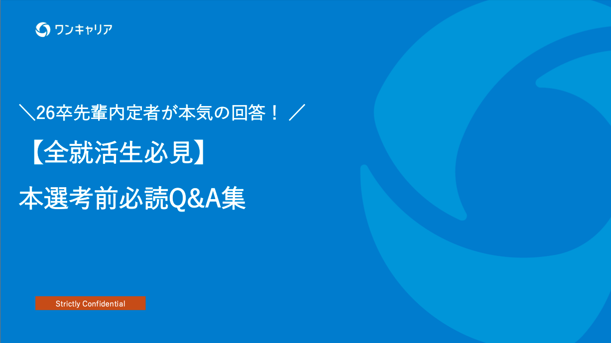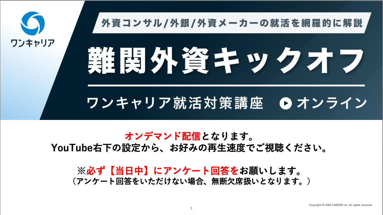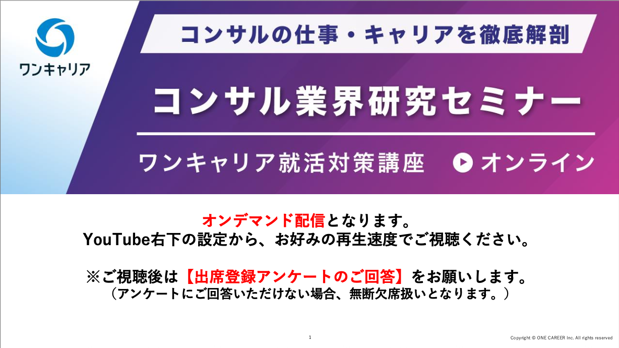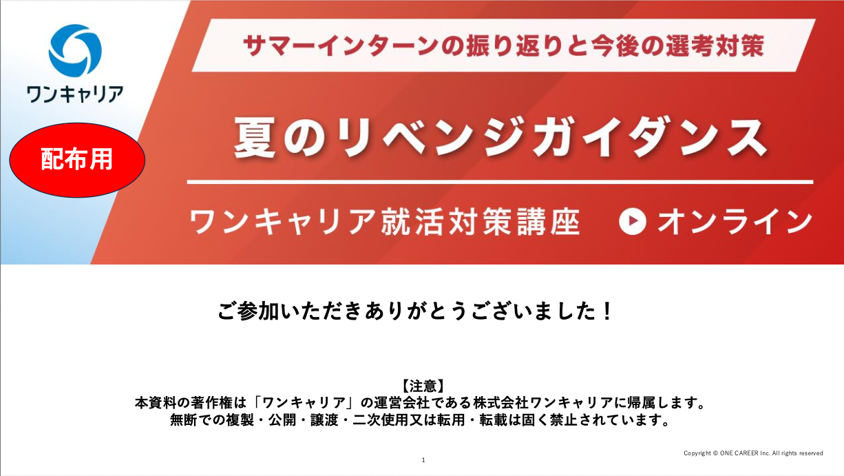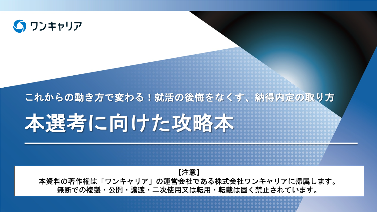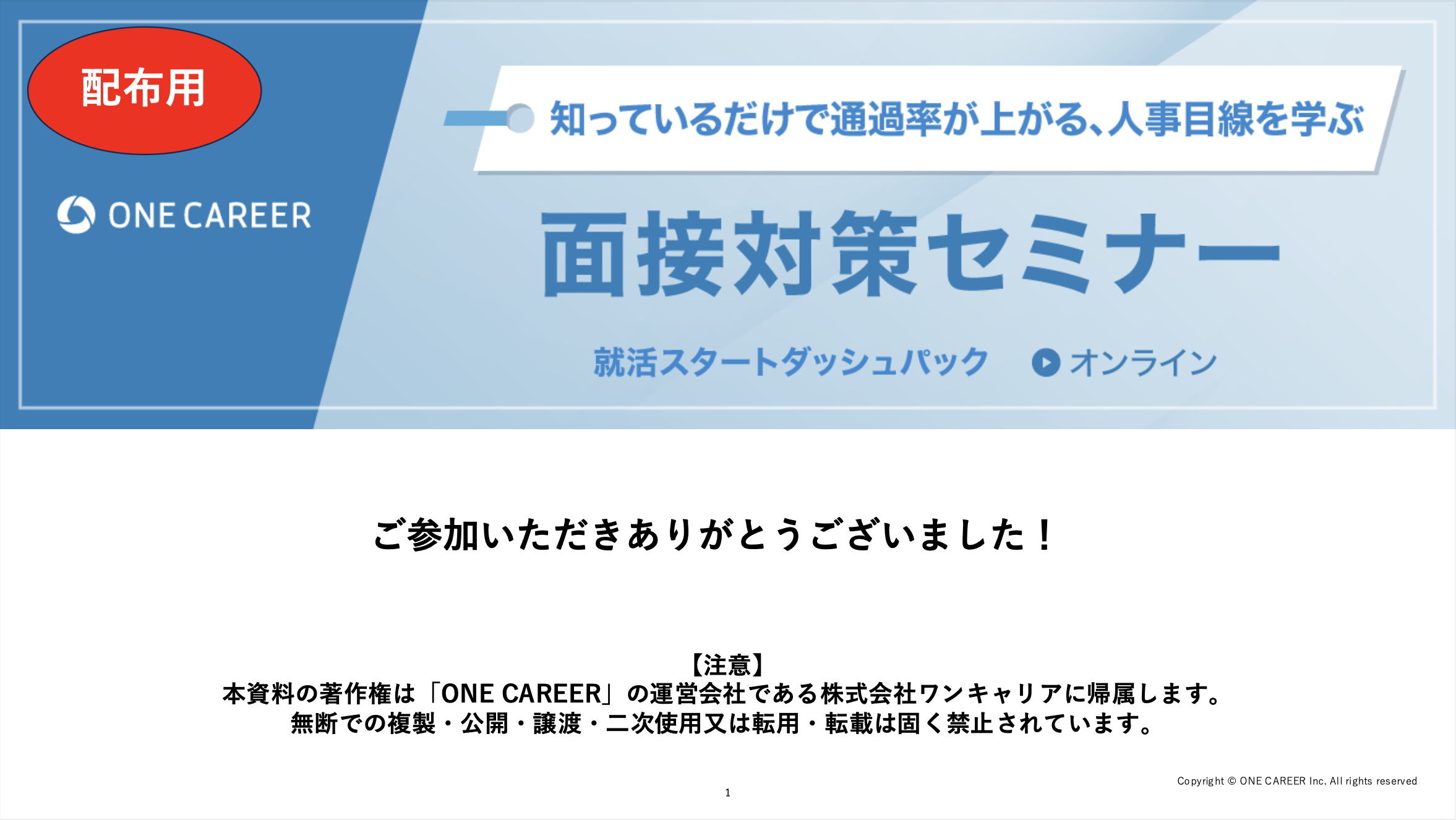 ※ 本資料の著作権は「ONE CAREER」の運営会社である株式会社ワンキャリアに帰属します。 無断での複製・公開・譲渡・二次使用又は転用・転載は固く禁止されています。ご注意ください!