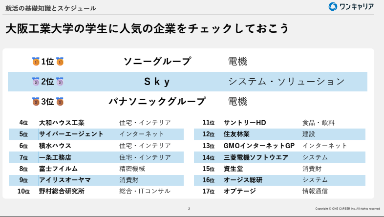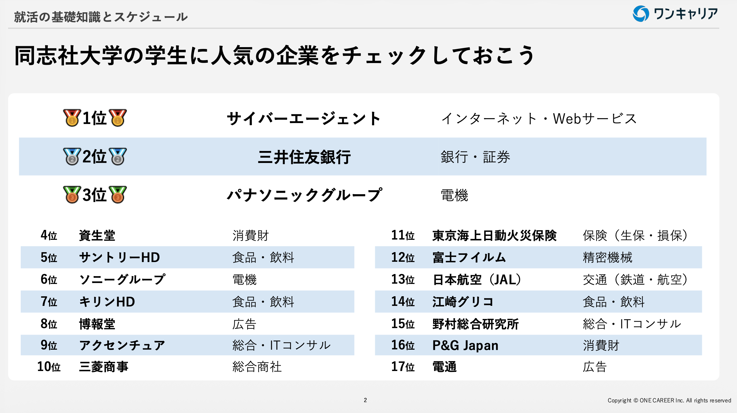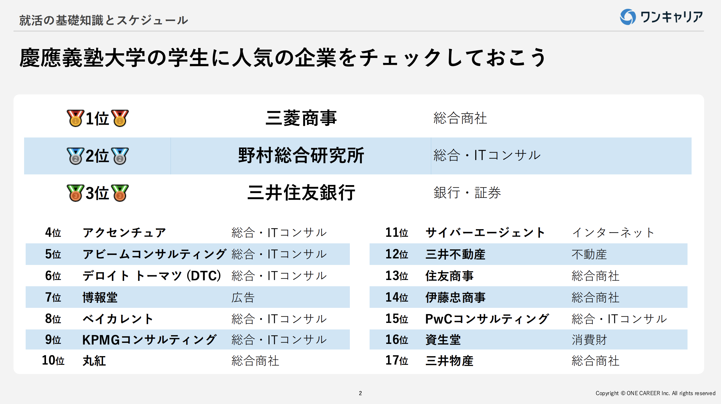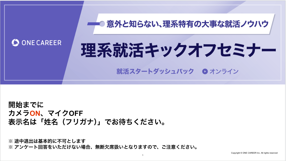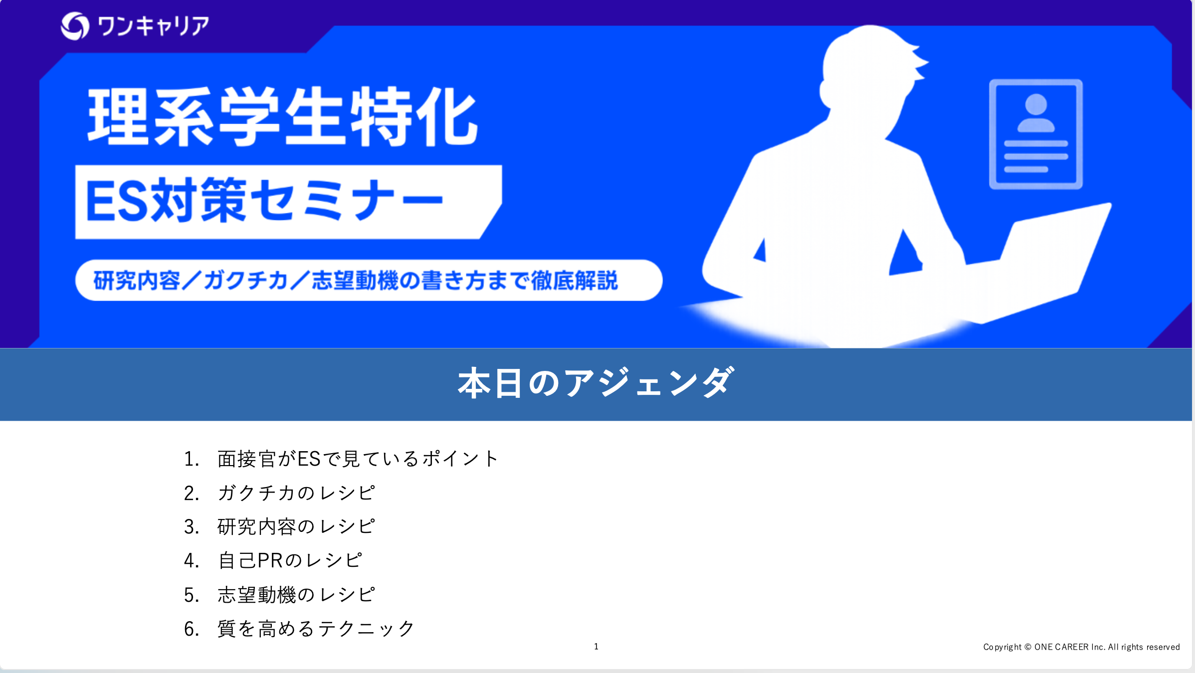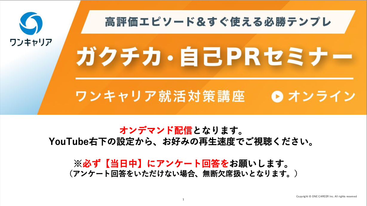 ※ 本資料の著作権は「ONE CAREER」の運営会社である株式会社ワンキャリアに帰属します。 無断での複製・公開・譲渡・二次使用又は転用・転載は固く禁止されています。ご注意ください!