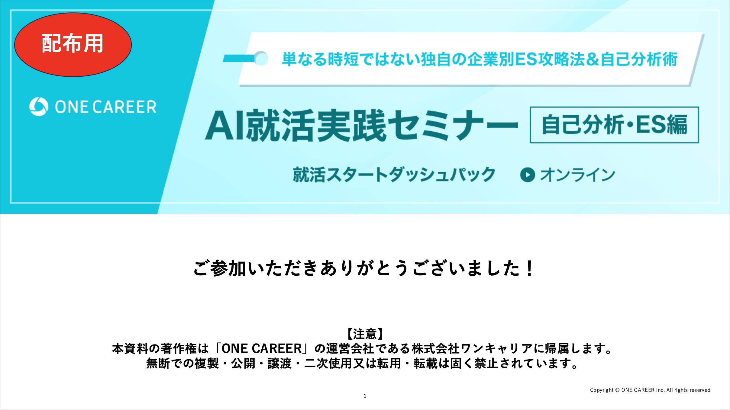 『【27卒】AI就活実践セミナー<自己分析・ES編>|単なる時短ではない独自の企業別ES攻略法&自己分析術』へのご参加ありがとうございました。