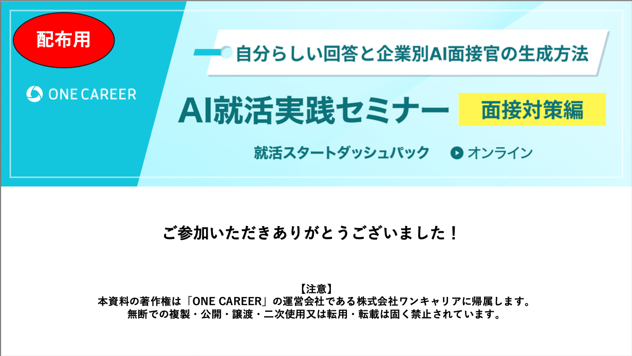 『【27卒】AI就活実践セミナー<面接対策編>|自分らしい回答と企業別AI面接官の生成方法』へのご参加ありがとうございました。