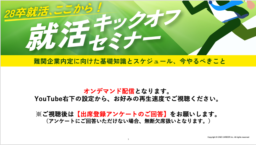 『【28卒】就活キックオフセミナー|難関・有名企業内定を勝ち取るための「正しい就活の始め方」』へのご参加ありがとうございました。