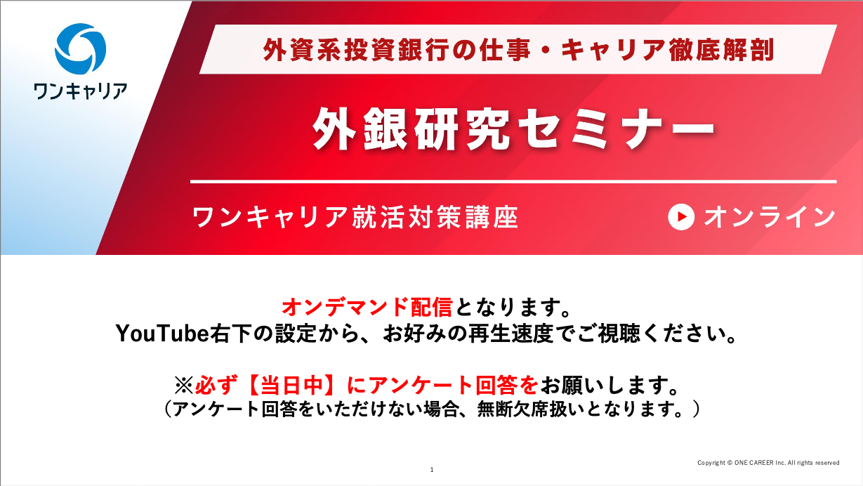 『【28卒】外銀研究セミナー|外資系投資銀行の仕事・キャリア徹底分析』へのご参加ありがとうございました。