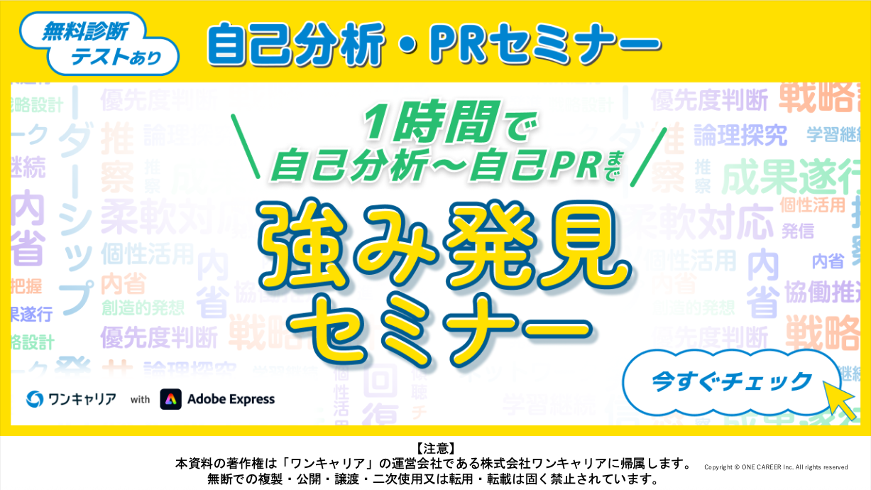 『1時間で自己分析〜自己PRまで|強み発見セミナー』へのご参加ありがとうございました。