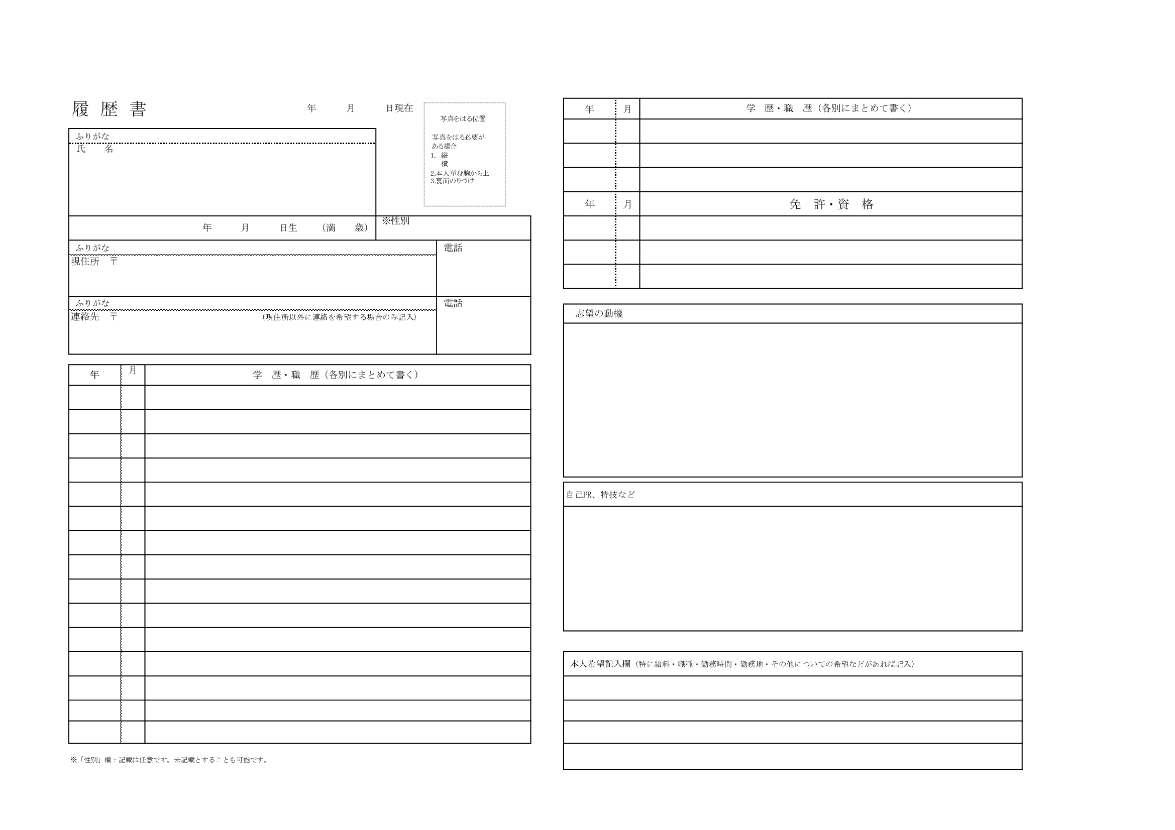 志望動機・自己PRを強調できる履歴書テンプレート