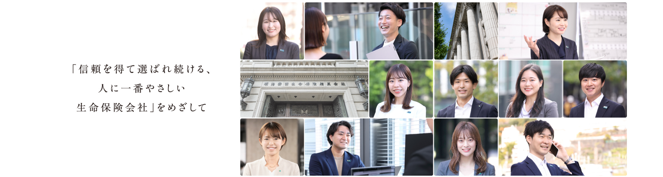 明治安田は、相互扶助の精神のもと、生命保険事業のパイオニアとして、これからもお客さまを大切にする会社に徹し、いつまでも変わらない安心をお届けするとともに、一人ひとりの健康づくりを応援していきます。また、「信頼を得て選ばれ続ける、人に一番やさしい生命保険会社」の実現に向け、全役職員が一丸となって取り組んでいます。