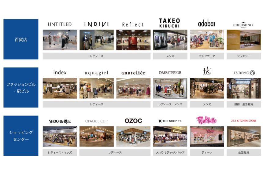 レディス・メンズ・キッズから雑貨まで 71ブランド/国内外2,295店舗 を展開。