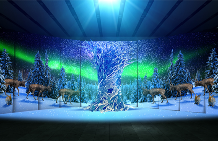 幻想的な音と巨大なプロジェクションマッピングの映像の世界が、クリスマス時期にワールド北青山ビルに出現しました。