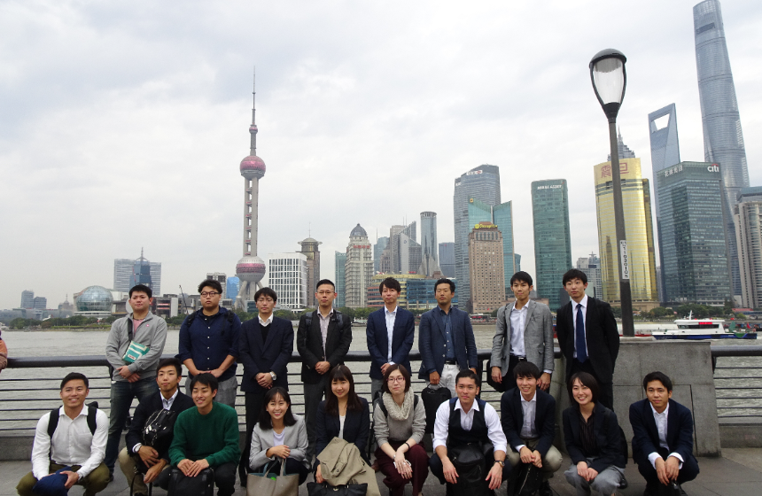 若手社員は集合研修(写真)としても海外での研修もございます。