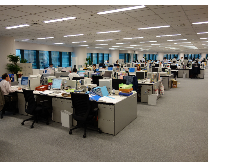 本社勤務の様子です。汐留シティセンター12階~13階で業務をしております。