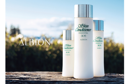 薬用スキンコンディショナーエッセンシャルN、通称『スキコン』の名で知られるロングセラー化粧水は、アルビオンを代表する商品のひとつ。