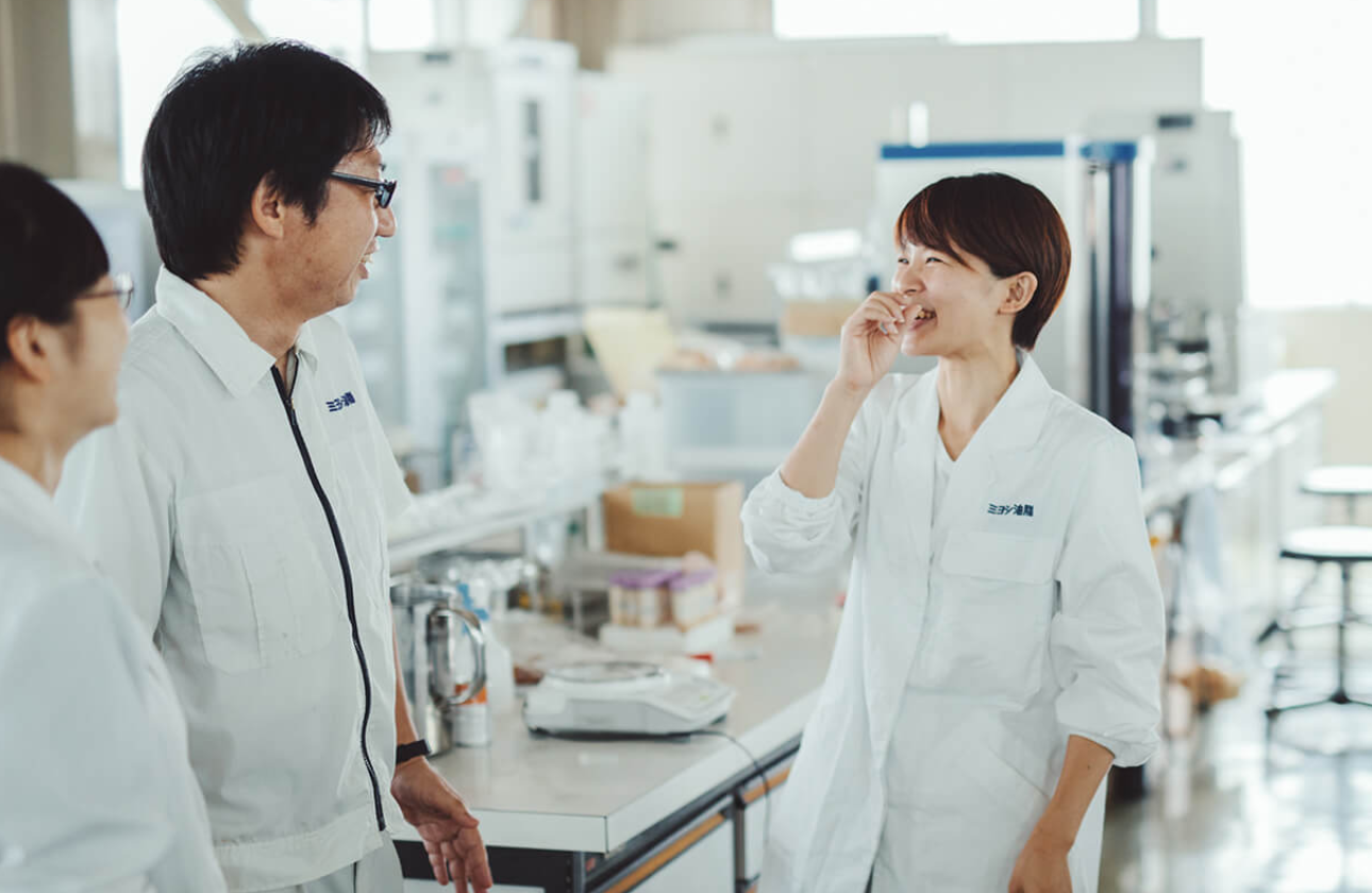 食用加工油脂の生産量は国内トップクラス。牛脂・豚脂といった動物脂にも強みを持っています。パンや菓子に欠かせないマーガリン・ショートニング、ドーナツや即席麺を揚げるフライ用油脂の他、食品に無限の機能性を発揮する粉末油脂など、当社が提供している製品はあらゆる食品に活用されています。その種類は約1000種類にもおよび、日頃私たちが口にする食品のほとんどに使用されています。時代にマッチした食品素材の研究開発とメニュー提案を進め、食文化の発展に貢献しています。