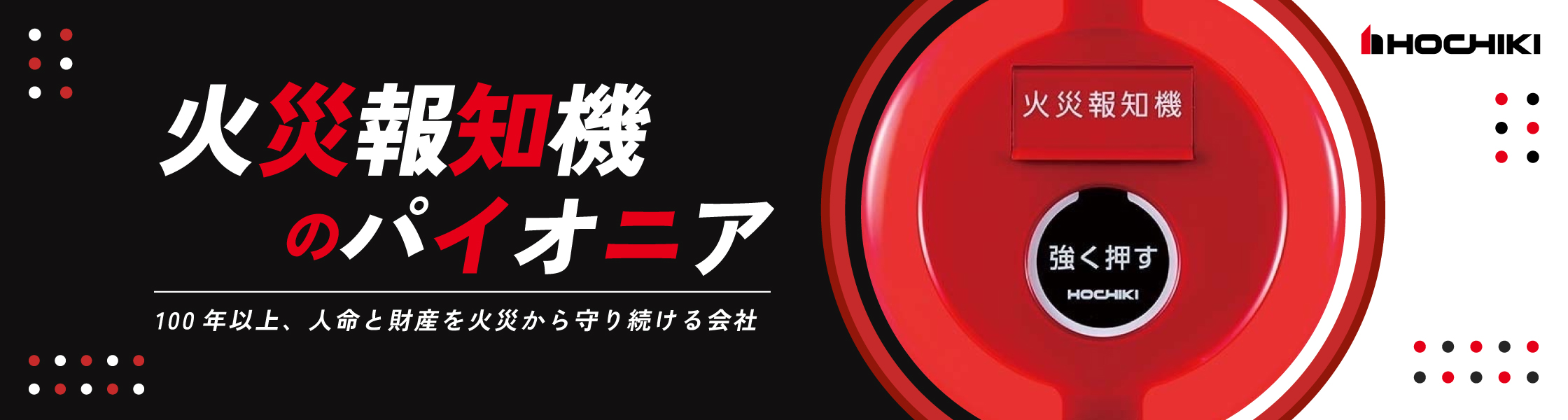 誰もが学校や駅で一度は目にしたことのある火災報知機。その多くに、私たちの技術が息づいています。ホーチキは、1918年の創業以来、火災から人々の命と財産を守り続けてきました。日本初の自動火災報知設備を開発するなど、常に業界をリードするパイオニアとしてトップメーカーに君臨。人々の暮らしに不可欠な「当たり前の安全」を、私たちの技術が静かに支えているのです。