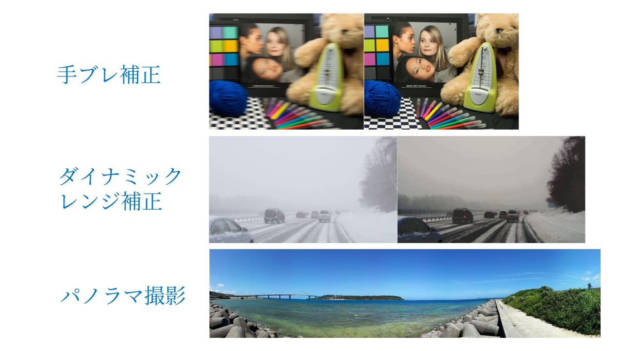 世界各国のスマホメーカーを主要顧客とし、主にはスマホカメラの機能である「動画・静止画手ブレ補正」 「パノラマ」 「HDR」などの特許技術を提供しています。