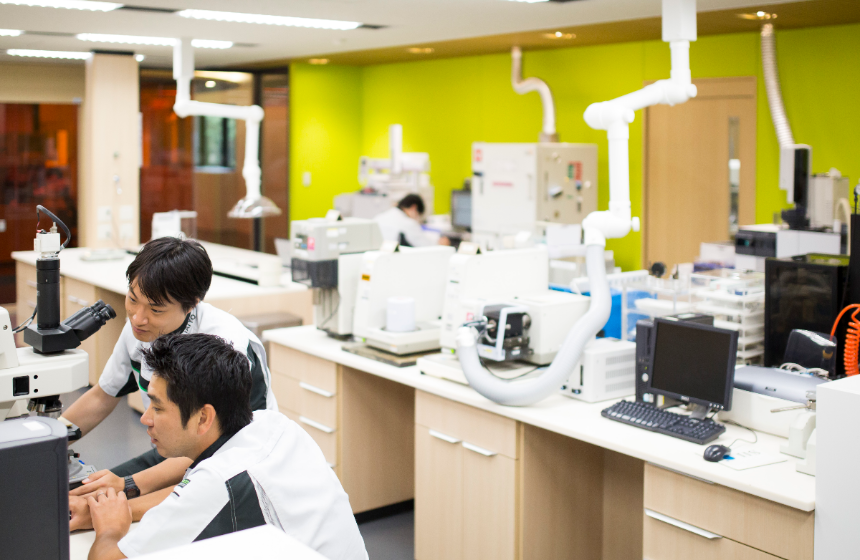 また、社員の“挑戦したい”という気持ちと高い技術開発力を支えるのが、研究開発に打ち込める環境です。2016年5月に全面リニューアルした施設では分析装置、計測機器、評価装置等の設備を揃え、有機合成からデバイスの信頼性評価に至るまで一貫した研究開発がスピーディーに行える環境を実現しました。これにより、今後大きな成長が期待される分野の研究開発にも積極的に取り組めるようになりました。