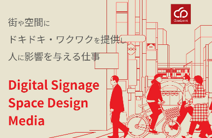 | 事業概要 | デジタルサイネージ:人々の目を引きつけるデジタルサイネージ/スペースデザイン:空間に付加価値を与えるスペースデザイン/メディア:ターゲットへ確実に訴求するメディア |