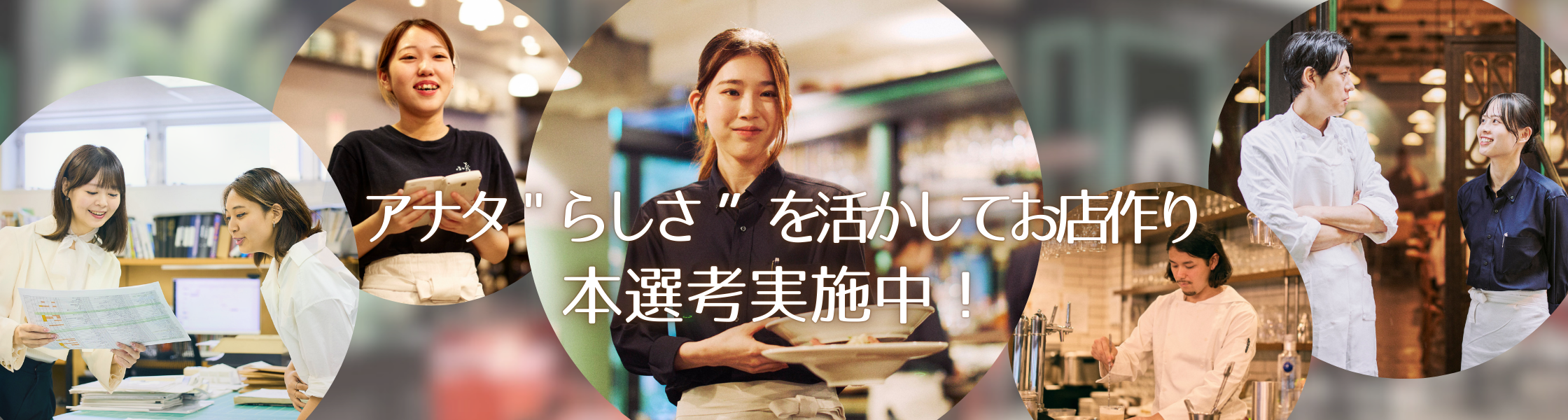私たちは飲食業界の中でも珍しく「チェーン展開」をせず、全ての店舗が違うメニュー/接客スタイル/仕入れ先/企画PR など、店舗とそこで働く人の裁量が非常に大きいことが特徴です!