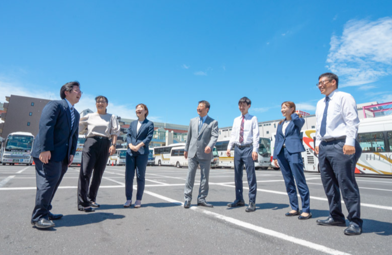 バスとタクシーの二本柱で事業を展開する当社。ドライバーでも内勤でも、様々な部門で新卒社員が活躍しています。
