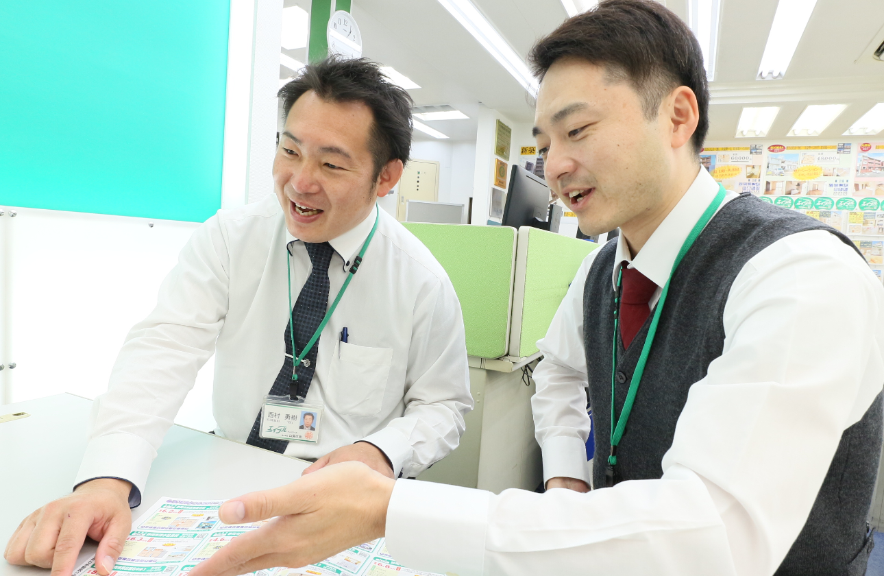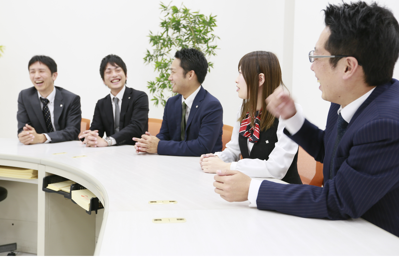住宅・不動産業界では珍しく、「チーム制」を導入。個人の成果だけでなく、チームとしての成果も重要視しています。そのため、社員同士の情報共有や深い交流があり、協力して目標に向かって頑張ることのできる、和氣あいあいとした雰囲気で働ける環境があります。