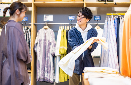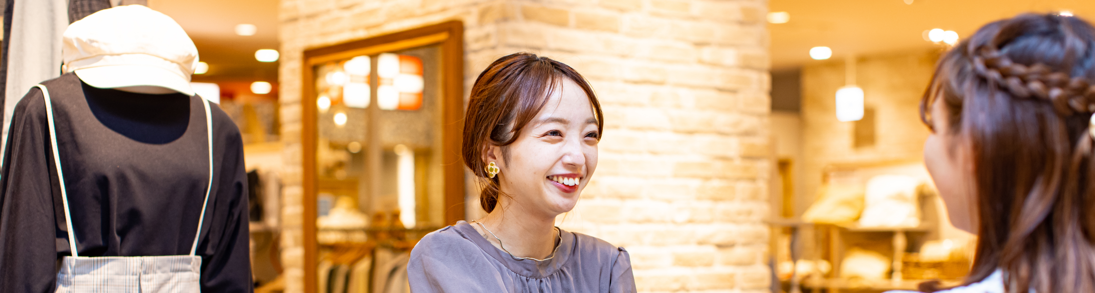 自分の好みの服に出会ったときのワクワクやドキドキ、洋服が好きな人ならわかりますよね。その気持ちをお客様と共有・共感できることにやりがいを感じられます。また、お洋服以外の部分で提案をすることもあります。お客様がお洋服を着ていくシチュエーションに合ったヘアメイク、香り、デートスポットをお勧めすることで、単に買い物をする場所という以上の、「来てよかった」と思ってもらえるような幸せなひと時を過ごしていただける接客・店舗づくりを目指しています。