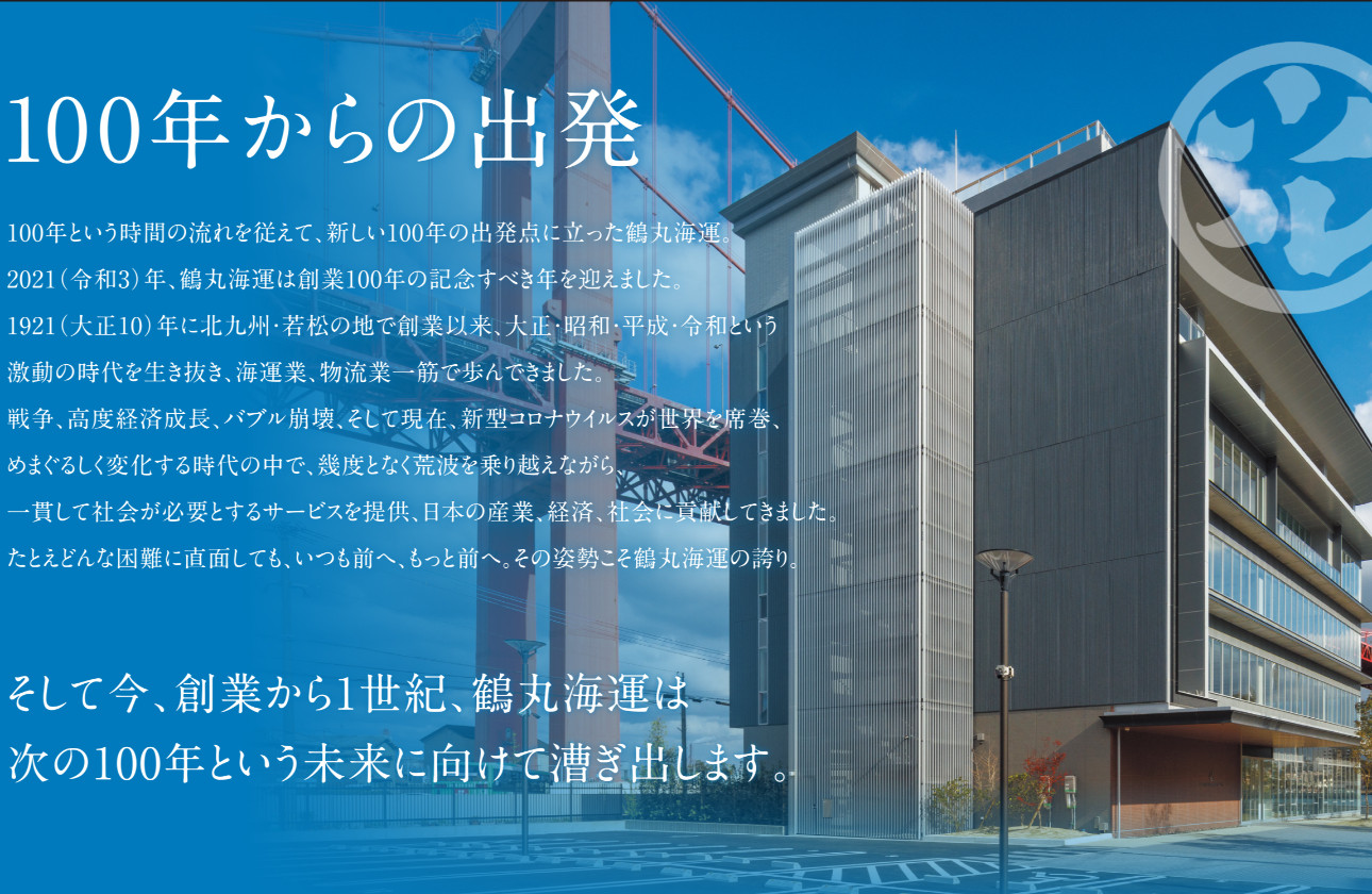 鶴丸海運は、創業1921年の総合物流業を営む会社です。