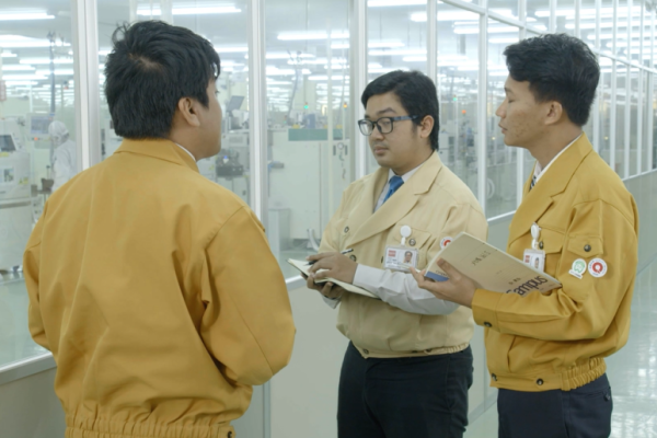 当社は、量産ラインの構築のために実験や工夫を行うラボとしての機能も担っています。例えば、試作段階での商品の量産化に向けた条件出しや、不良品の発生率を下げ、どのように安定して高品質な製品を作り続けることができるか等を研究しています。また、国内工場だけでなくグループ内の海外工場を支える“マザー工場”として製造面だけでなく、量産における品質改善を海外工場へフィードバックしたり、海外工場で発生した不良の原因を共に追究を行ったり・・・。そういった業務を通じ、将来的にはグローバルに活躍するエンジニアに成長出来ます。